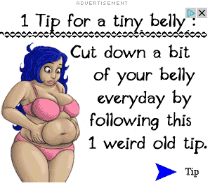 Hmm – perhaps that “weird old tip” is EAT LESS and EXERCISE, ya think?  These ads just kill me, do they think that by saying they have a “weird tip” or “clever trick” that people will really think “oh wow, I just have to know what that is”