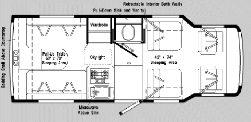 One of the things that was important to me in this purchase was price, size, and mileage. It had to be affordable, it had to be small and preferably fit into the parking structure at work (8’2″ clearance), and of course who wants to send more on gas than is absolutely necessary. This unit is 21 feet long, so it fits into a standard parking space, just like an oversized van.
